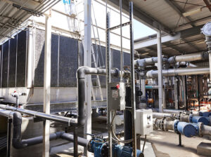 Two 490-ton water-cooled centrifugal chillers play a pivotal role in maintaining the thermal equilibrium within Teradata’s premises. Augmenting these are a multitude of water source heat pump units, with sizes ranging from 2 to 5 tons, which contribute to the facility’s energy-efficient temperature control. In line with Teradata’s commitment to advanced technology, 24 Trane SWUD units, known for their self-contained and water-cooled design, enhance the indoor climate across the facility.